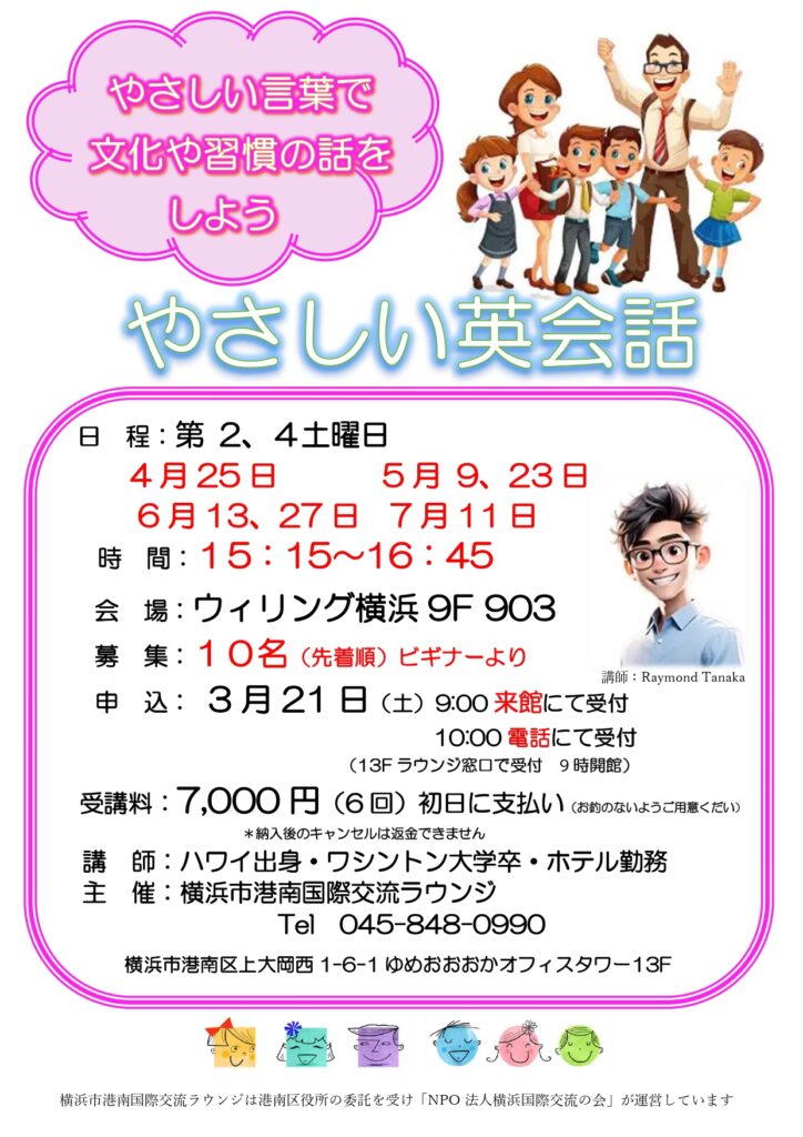 | 主 催 | 横浜市港南国際交流ラウンジ<a href="http://Tel 045-848-0990"> Tel 045-848-0990 横浜市港南区上大岡西1-6-1ゆめおおおかオフィスタワー13階 |